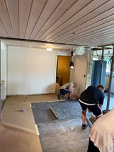 Væggen er brækket ned, der lægges nyt gulv og nu gælder det så malerarbejdet.