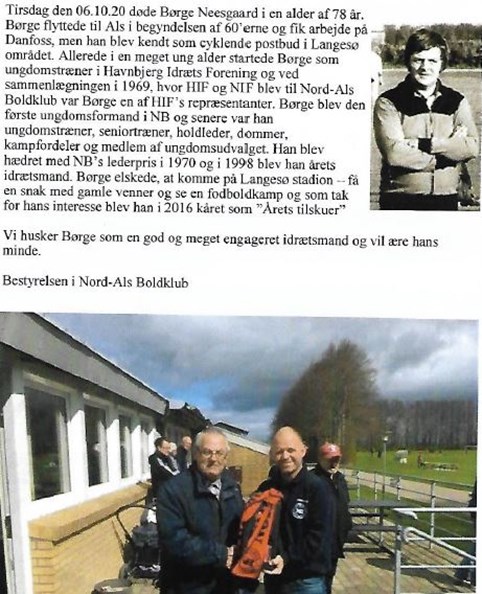 17.10.2020 - Mindeord om Børge Neesgaard (udklip fra kampprogrammet)