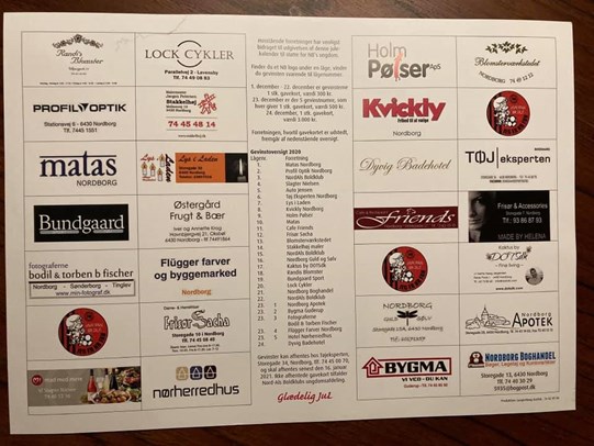 Julekalenderen med lokale gevinstchancer bag lågerne.