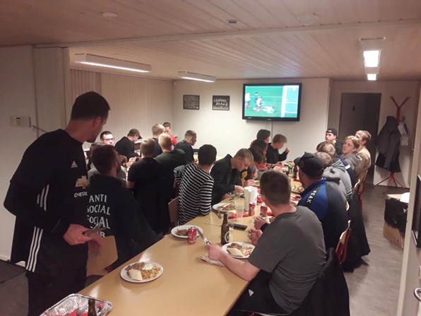 målmandstræner Arne Frederiksen til. Altså et aldersspring fra 16-50 år på samme hold, det er da klub mentalitet!